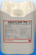 AQUA-CLEAR PFD concentrated liquid polymer dispersant provides superior mud and sediment removal from the producing formation and gravel pack. This product is also a highly effective mud thinner. AQUA-CLEAR PFD dispersant contains no phosphates.